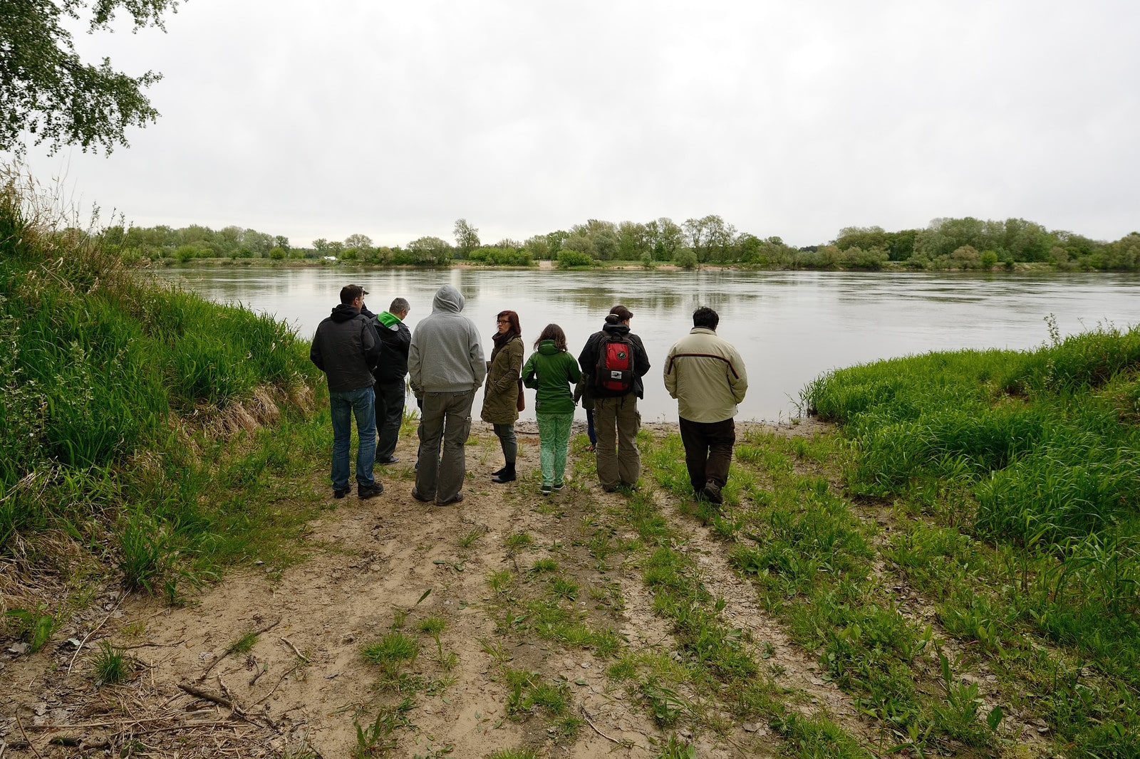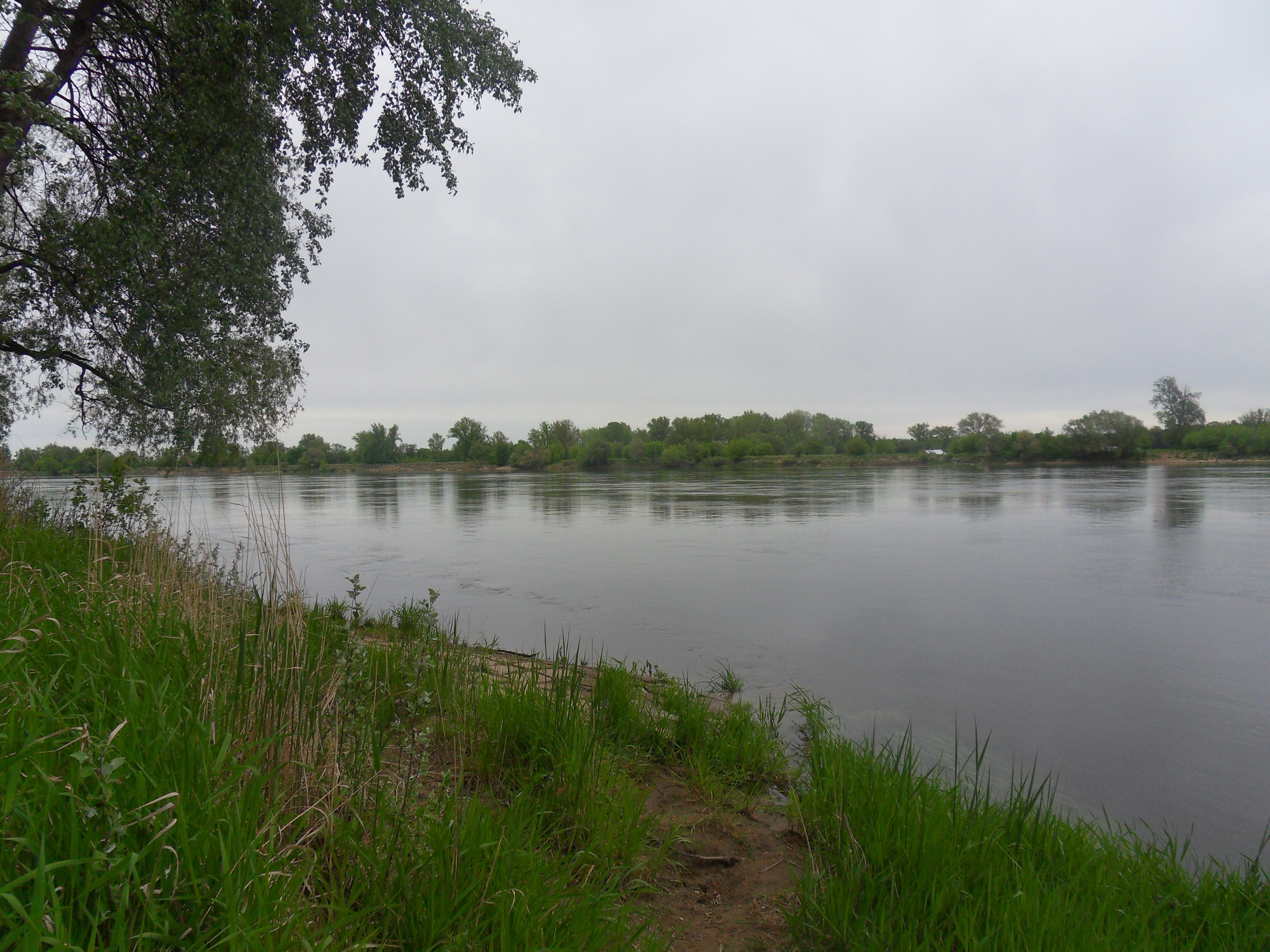 „Wisła w tym miejscu płynęła w dolinie, jakby w niecce głębokiej, której wysokie, urwiste brzegi rozciągały się po obydwu stronach rzeki. Po prawej - wysoki brzeg porastał sosnowy las, po lewej - były wzgórza pokryte uprawnymi polami; na horyzoncie malowniczo zarysował się kościółek z wysmukłą wieżą. Tuż przy samej wodzie zieleniły się łąki przegrodzone wałami przeciwpowodziowymi, a za nimi sterczały kanciaste łby starych wierzb i wysokie topole. Rzeka wydawała się ruchliwa i przez to bardzo wesoła. Od czasu do czasu pojawiały się mielizny i piaszczyste łachy, złociste i białe od wymytego przez wodę piasku.” (Rzdz 2)