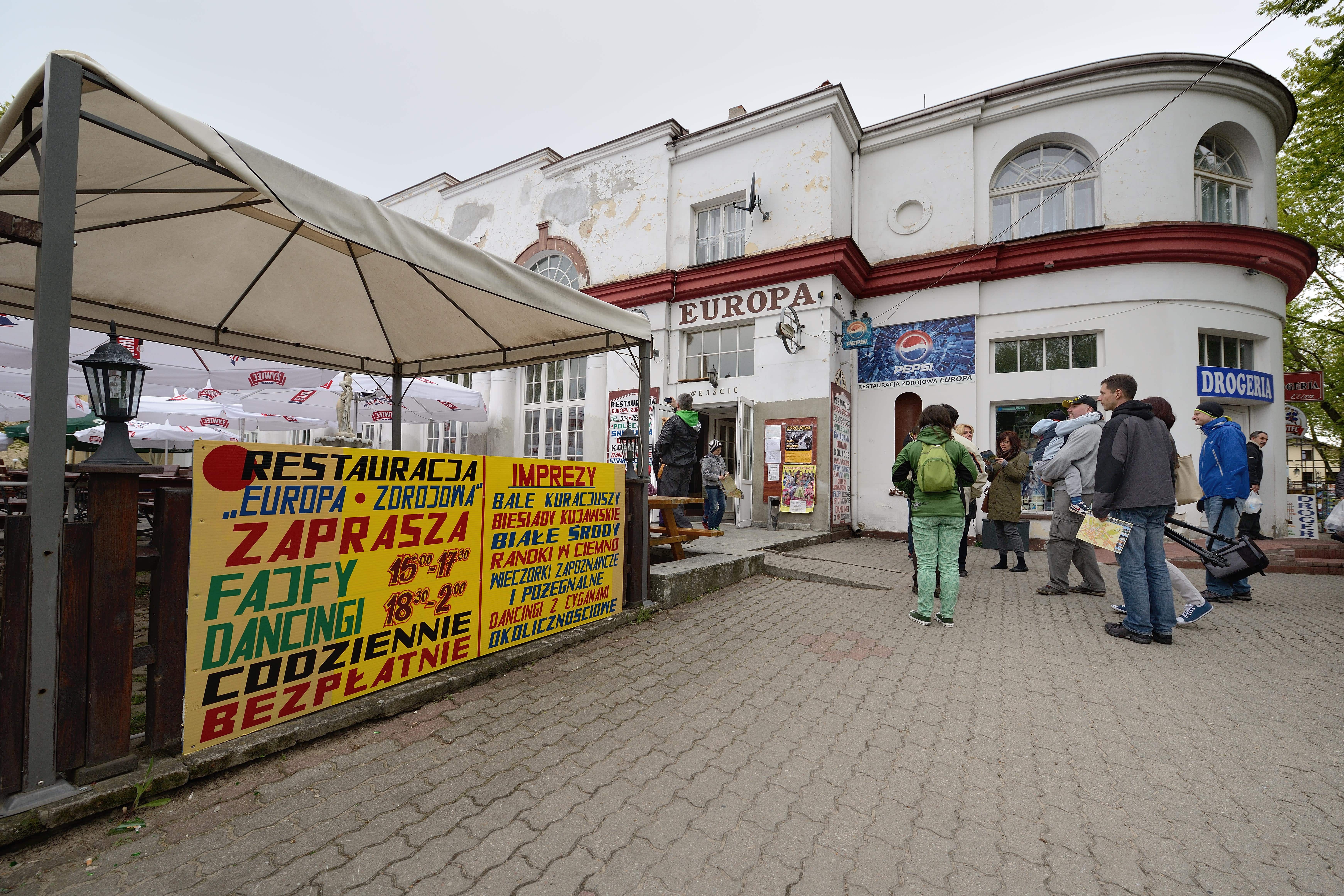 „Ten pan poszedł teraz do „Zdrojowej”. (…) Przed wejściem do „Zdrojowej” zatrzymała się. (…) Był wieczór, „Zdrojowa” dopiero zapełniała się gośćmi. Orkiestra już grała i na parkiecie kręciło się kilka par, ale wiele stolików w ogromnej sali było jeszcze pustych. Zajęliśmy mały stoliczek przy drzwiach, by obserwować stąd całą salę, a jednocześnie mieć baczenie na wychodzących i wchodzących do lokalu.” (Rzdz 11)