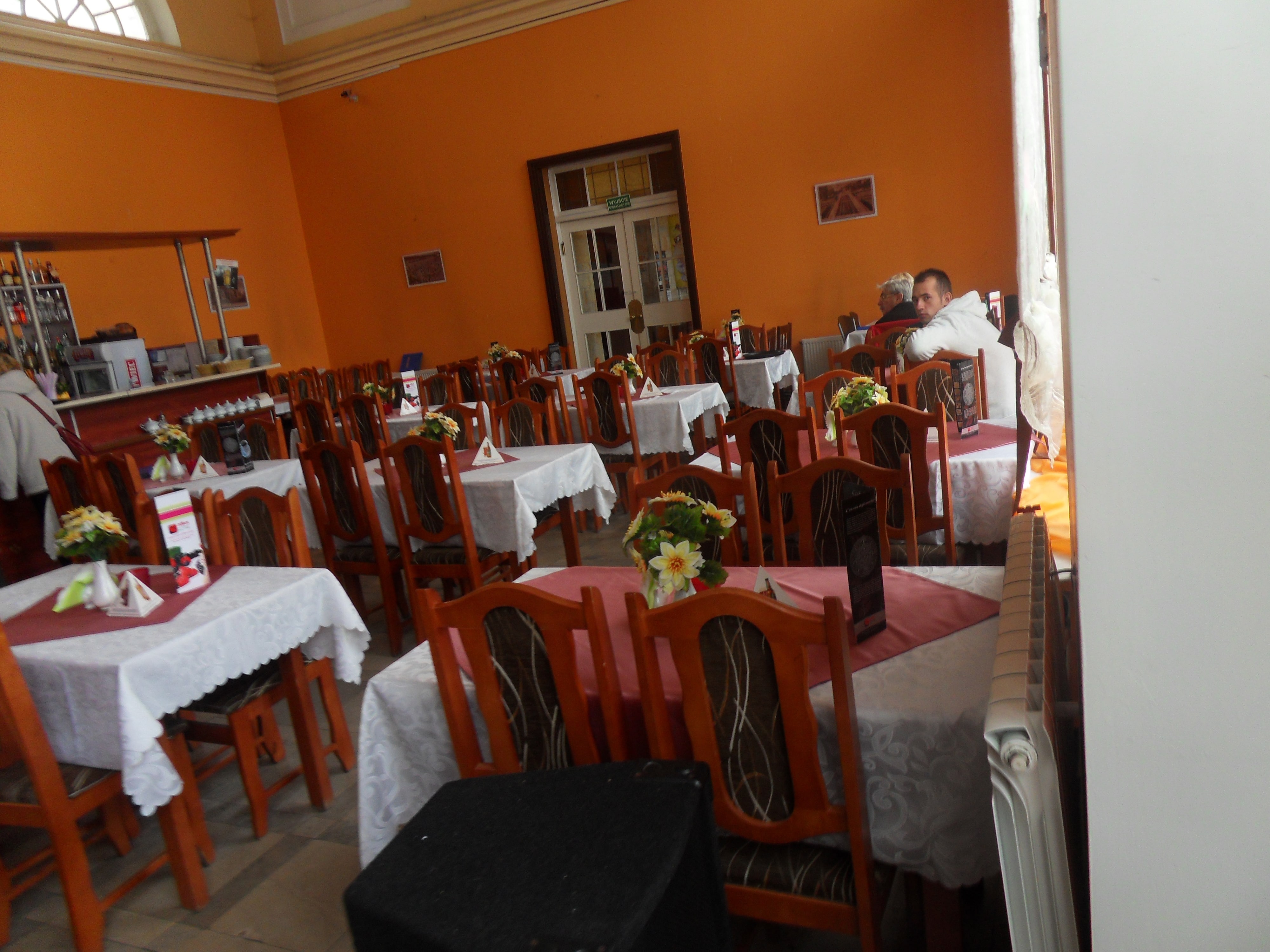 „(...) W miasteczku znajduje się stacja benzynowa i gospoda ludowa, mieszcząca się obok niewielkiego skwerku, koło którego zatrzymują się autobusy PKS–u. Przy głównej ulicy w małym i obskurnym drewniaku jest kawiarnia o nazwie „Kolorowa”, ale wnętrze jej ma kolor brudnoszary, z zielonkawymi zaciekami na suficie. (...)” (Rzdz 4)