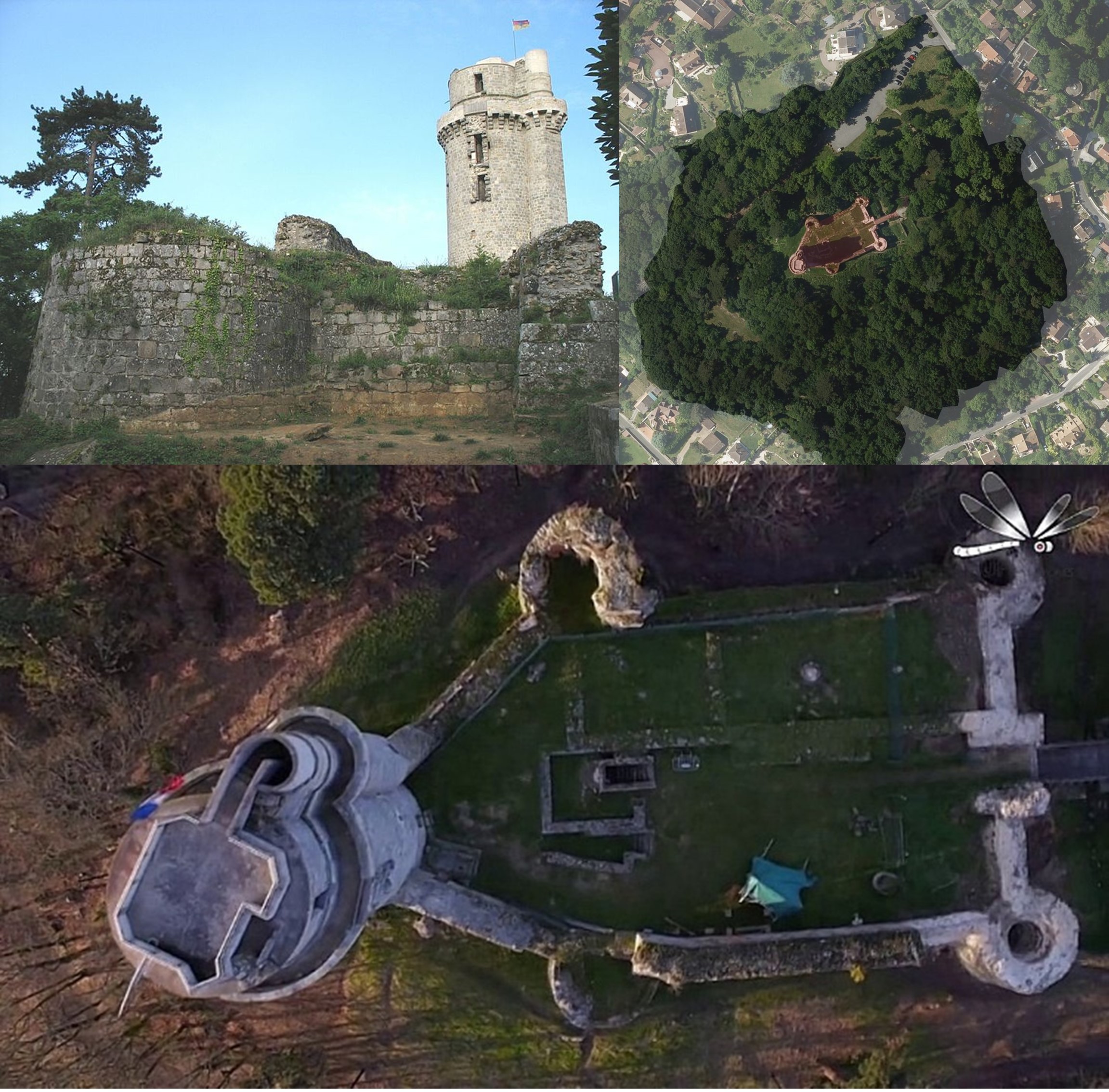 TomaszK: Chatillon Coligny to jednak tylko samotna wieża. Chateau-Renault, to wprawdzie cały zamek, ale otoczony miastem a nie lasem, a poza tym za mało jest miejsca za murami żeby wybudować willę z basenem. Nadal najbardziej podobne pozostaje Twoje poprzednie odkrycie, zamek Chateau Gaillard w Normandii.