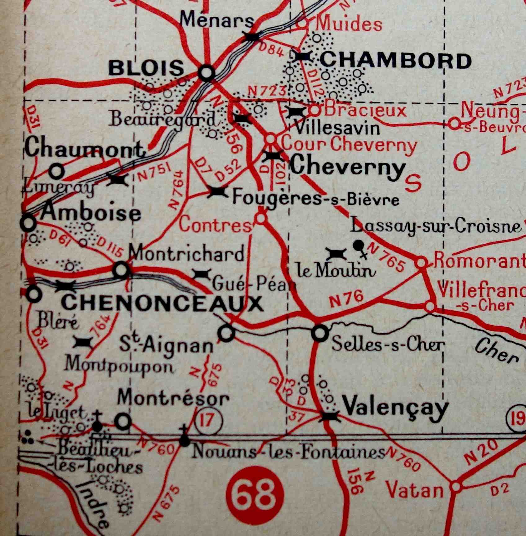 Nie po to jednak na to wskazałem. Chciałem Wam tylko uwidocznić, że na mapie w zielonym Michelinie Montpoupon jest w taki sposób zaznaczony, że zainteresowany zamkiem Chenonceau Nienacki praktycznie nie mógł go nie zauważyć.