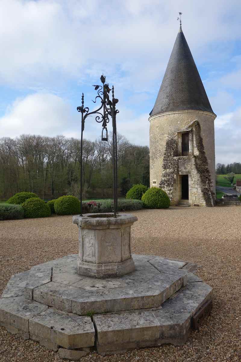 Wszystko inne, o czym wspomina autor, znajduje w obrębie murów zamkowych w Montpoupon: ogródek i fontanna na dziedzińcu.